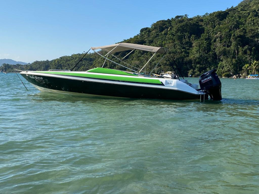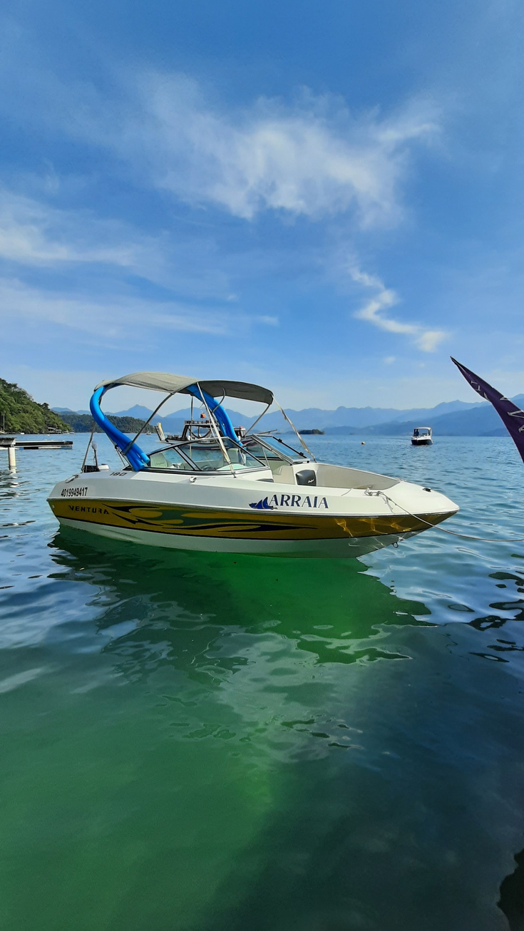 Lancha equipada com: acessórios de lazer, som bluetooth e ducha de agua doce.